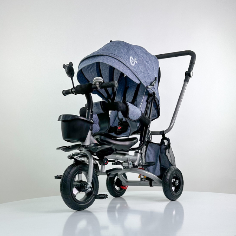 ► Истиот е мултифункционален производ бидејќи: детето може да седи додека го возите, може да спие и да ужива во возењето со подесување на потпирачот за грб, седиѓтето може да се ротира во два правци и на крај, детето може да го користи и самостојно по одредена возраст како класичен трицикл