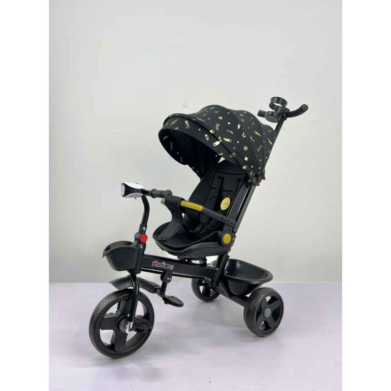 Склопливиот волан поседува и светло кое користи 2*АА+ батерии за напојување. Безбедносниот обрач, рачката за туркање и тендата се со можност за отстранување при што се добива класичен трицикл кој детето ќе може самостојно да го вози, додека безбедносниот појас е со пет точки на поврзување.