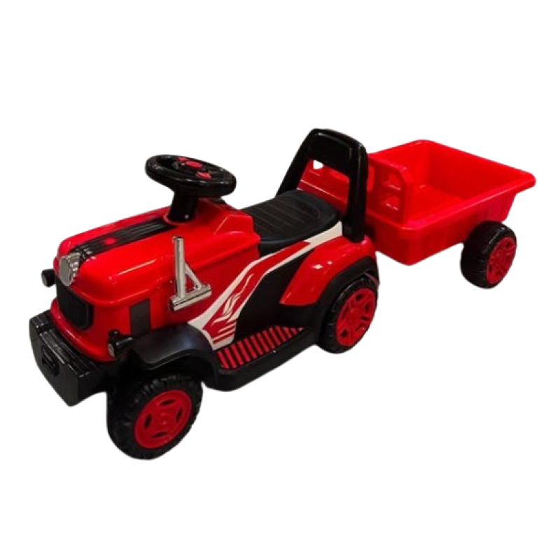 Тракторот на акумулатор ќе го направи среќно секое дете поради тоа што има идентичен дизајн како и тракторите за возарасни. Доаѓа заедно со приколка во која Вашиот мал фармер ќе може да ги вози своето братче или сестричка, или пак, ќе товара разни материјали: песок, земја, листови, камчиња, гранки...
