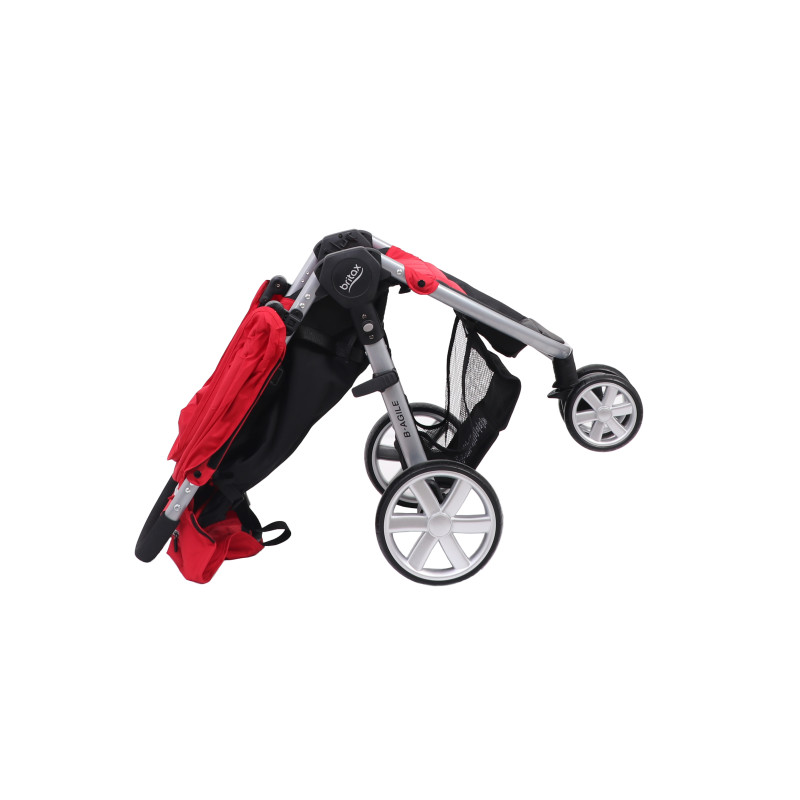 Конструиран во насока на безбедност и мобилност системот за патување со кој се одликува B-agile Ве одржува во постојано движење. Брзото преклопување со една рака ја затвора количката за неколку секунди, додека многуте џебови и екстра големата корпа овозможуваат простор за складирање на се што Ви е неопходно за Вашето малечко.