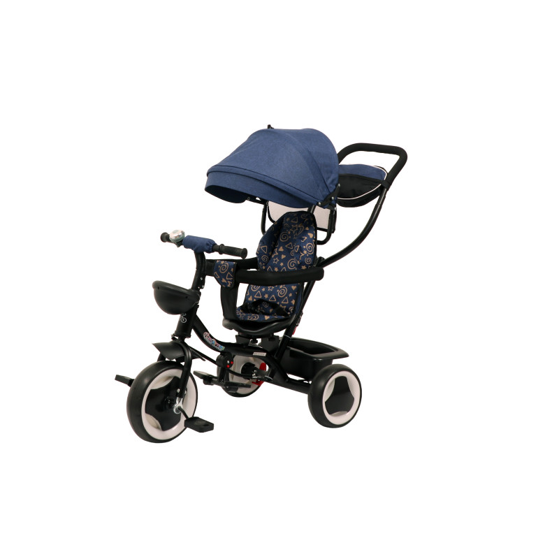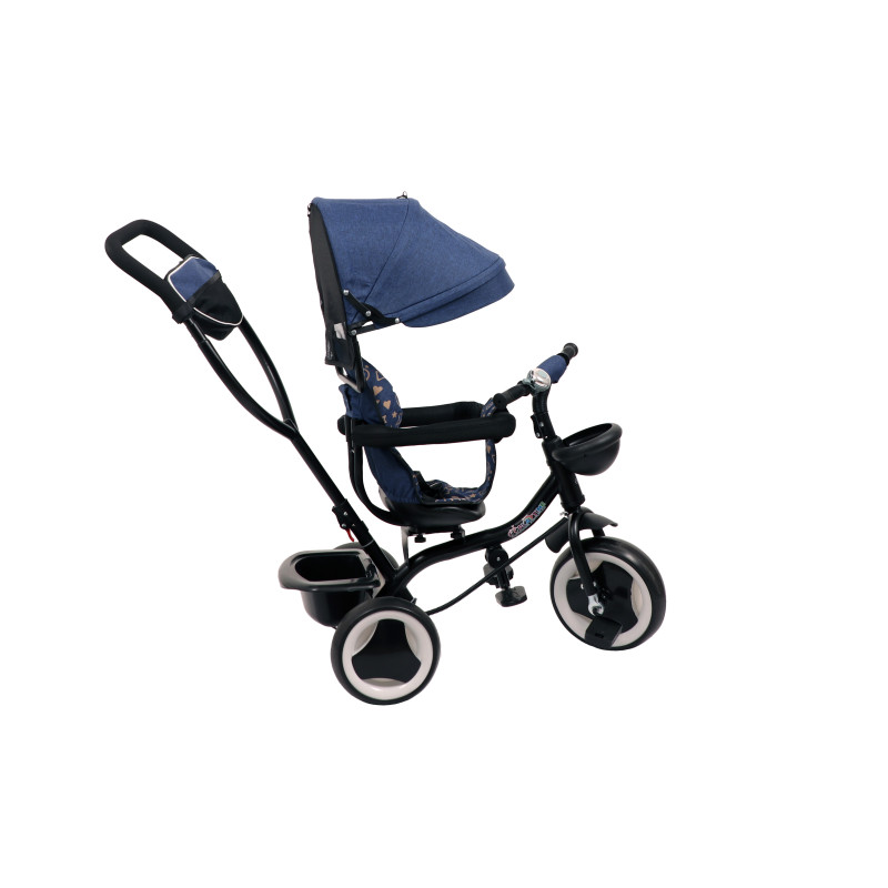 ► Трициклот најпрво се користи со сите елементи со туркање од страна на родителот од 12+ месеци па до 3 години возраст, а потоа се користи како класичен трицикл кој детето самостојно ќе го управува
