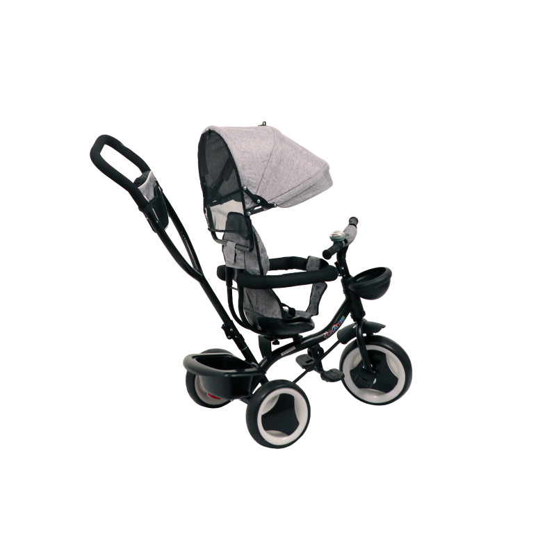 ► Трициклот најпрво се користи со сите елементи со туркање од страна на родителот од 12+ месеци па до 3 години возраст, а потоа се користи како класичен трицикл кој детето самостојно ќе го управува